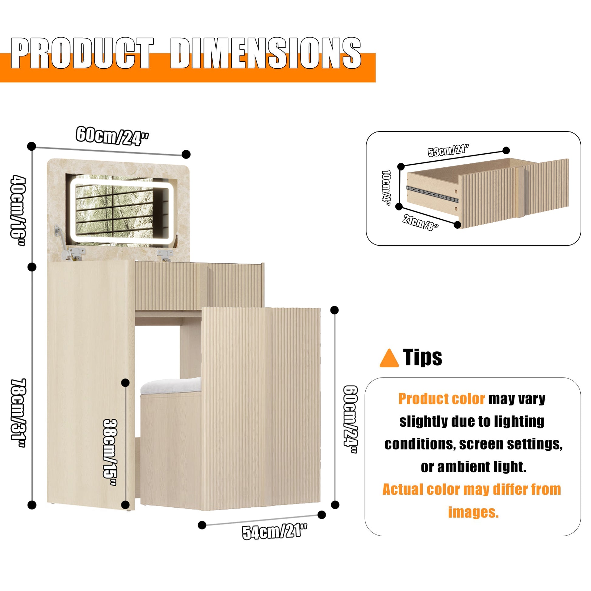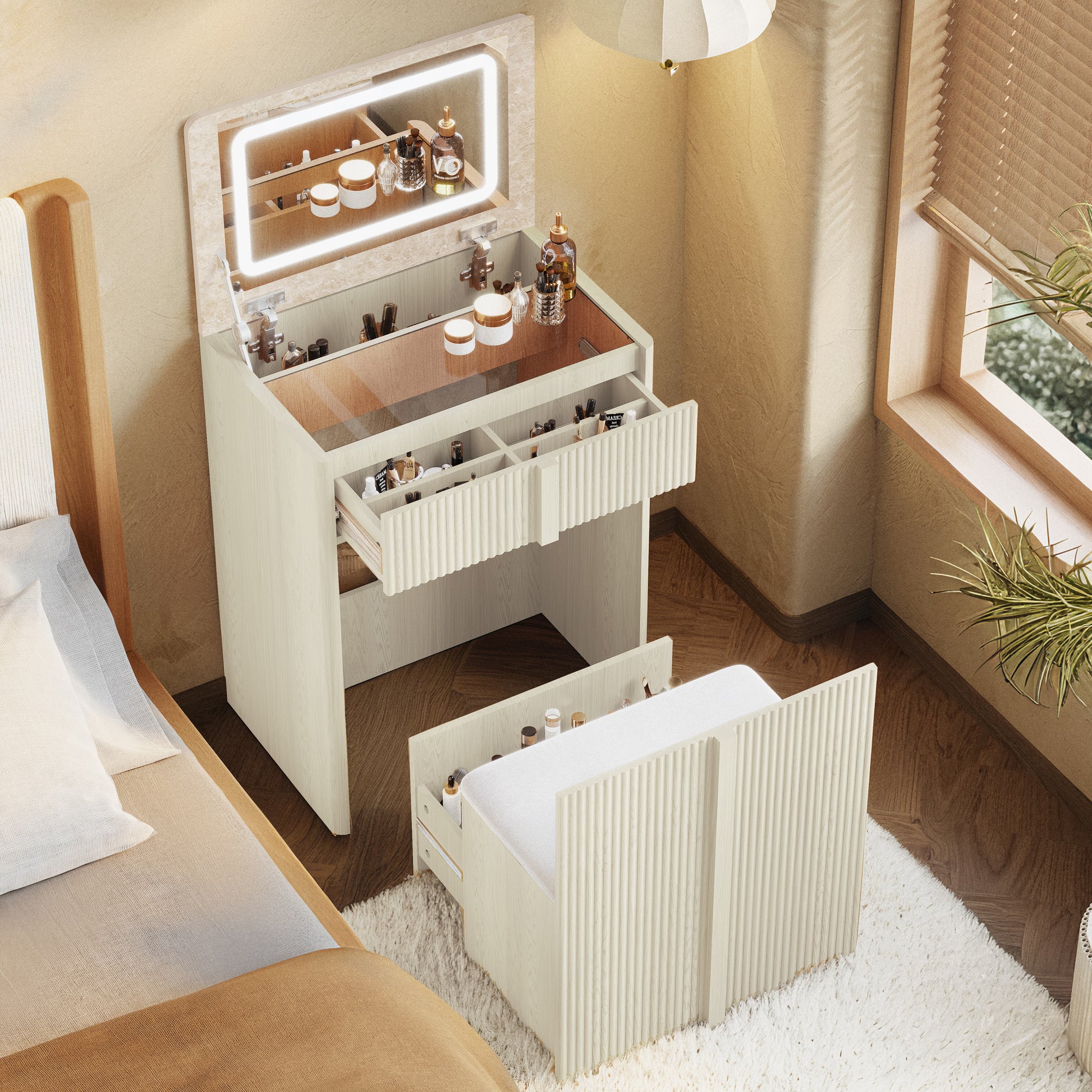 3 in 1 Vanity Desk with Flip Top Mirror and Led Light, 24" Modern Make Up Vanity Set