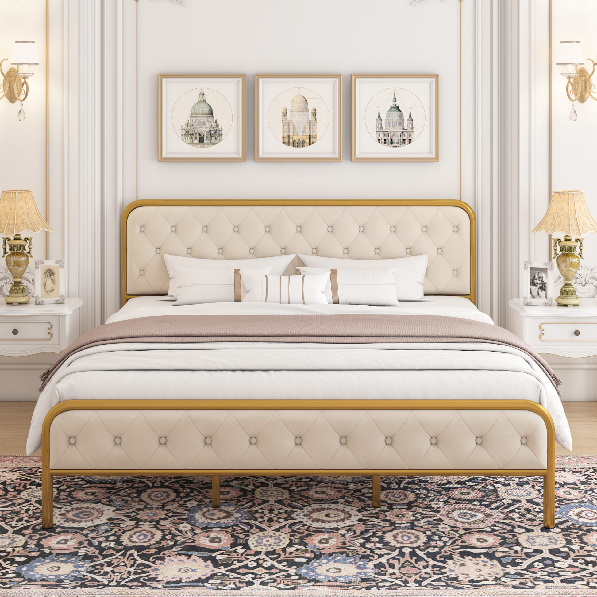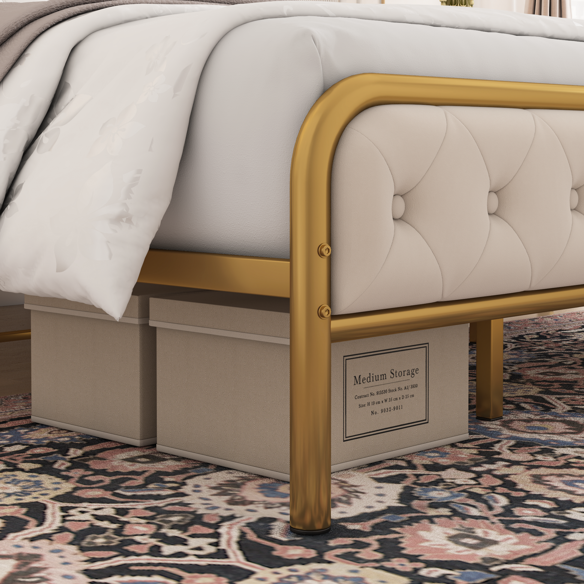 The bed frame is designed to fit standard mattress sizes. We recommend using a mattress that matches the selected bed frame size (e.g., a Queen-size mattress for a Queen-size bed frame).