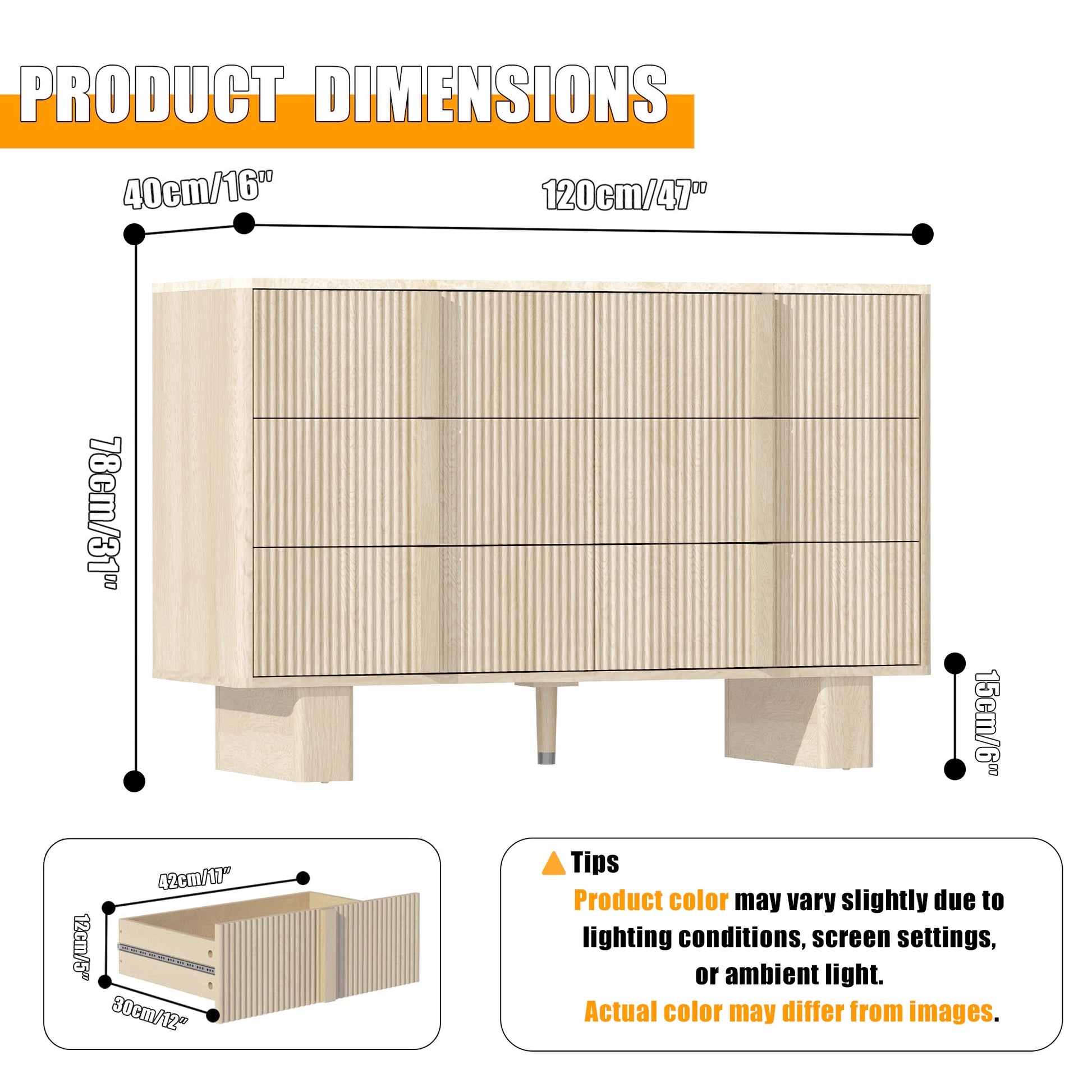 Fluted 6 Drawer Dressers for Bedroom, 47" Wide Modern Chest of Drawers with Wooden Handle