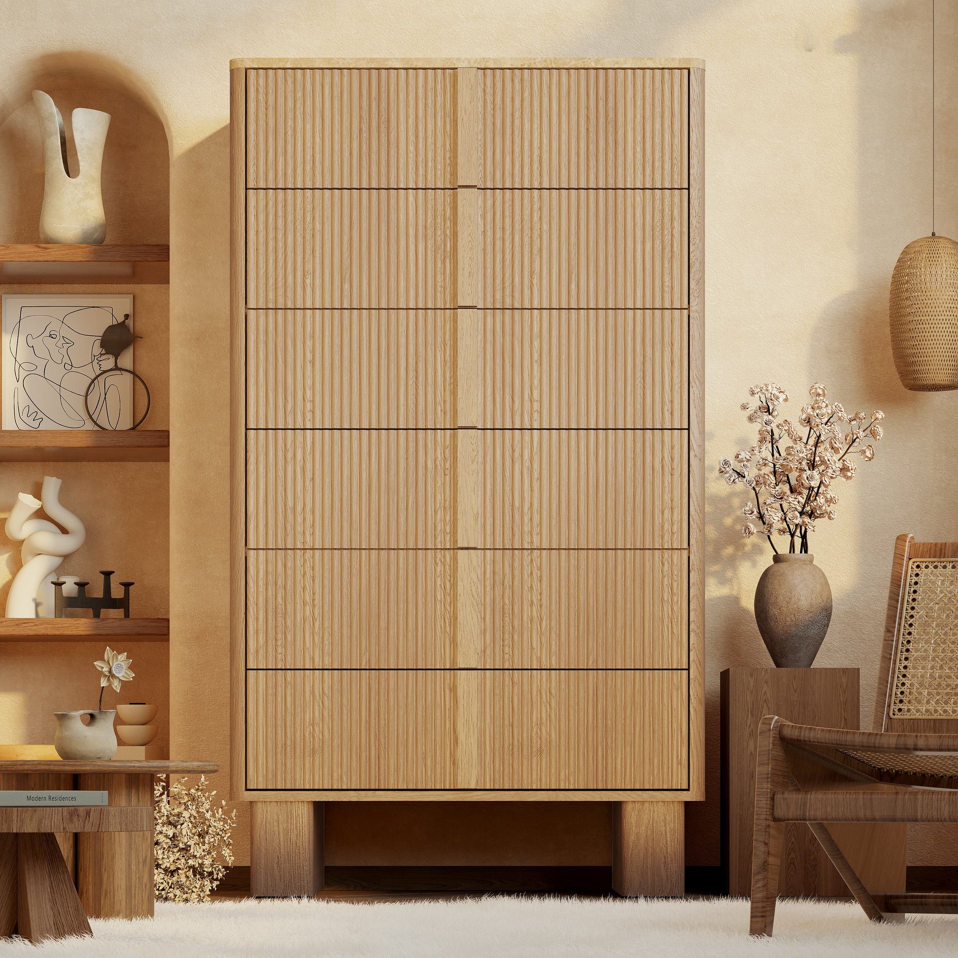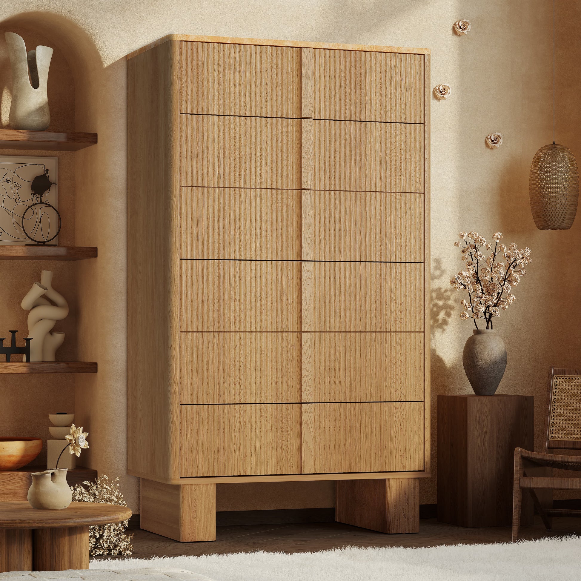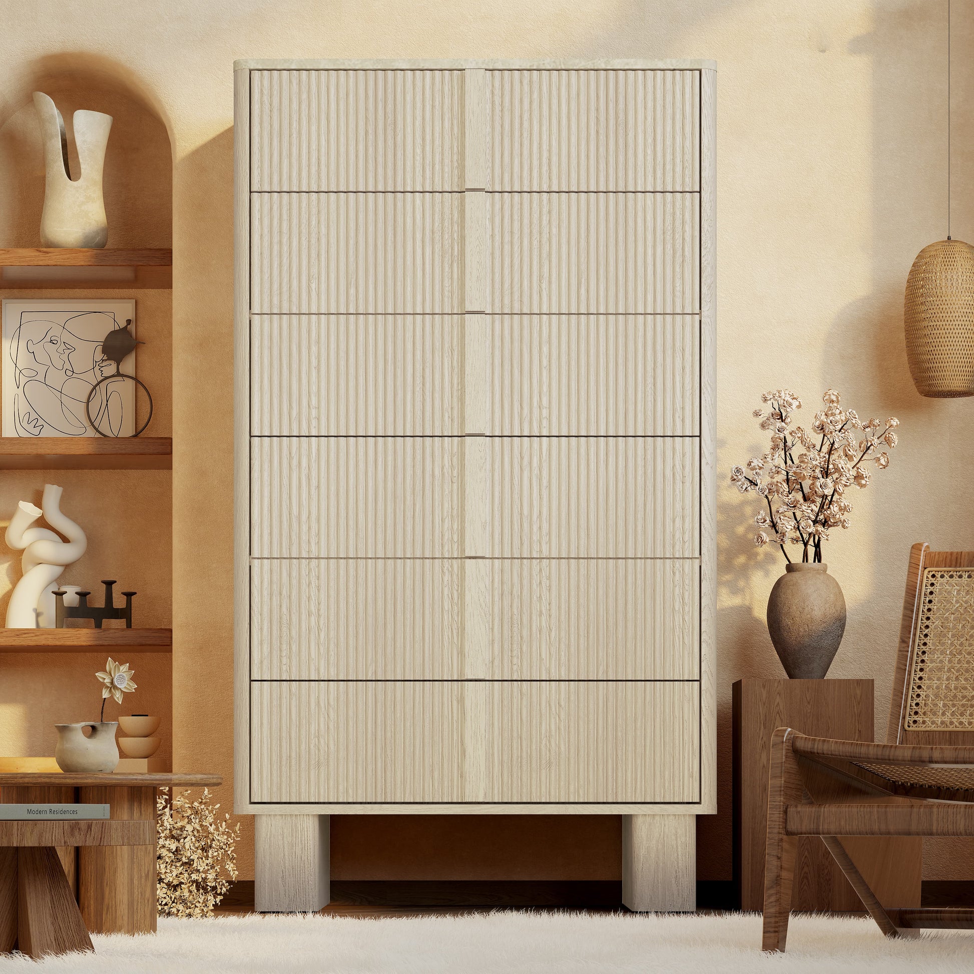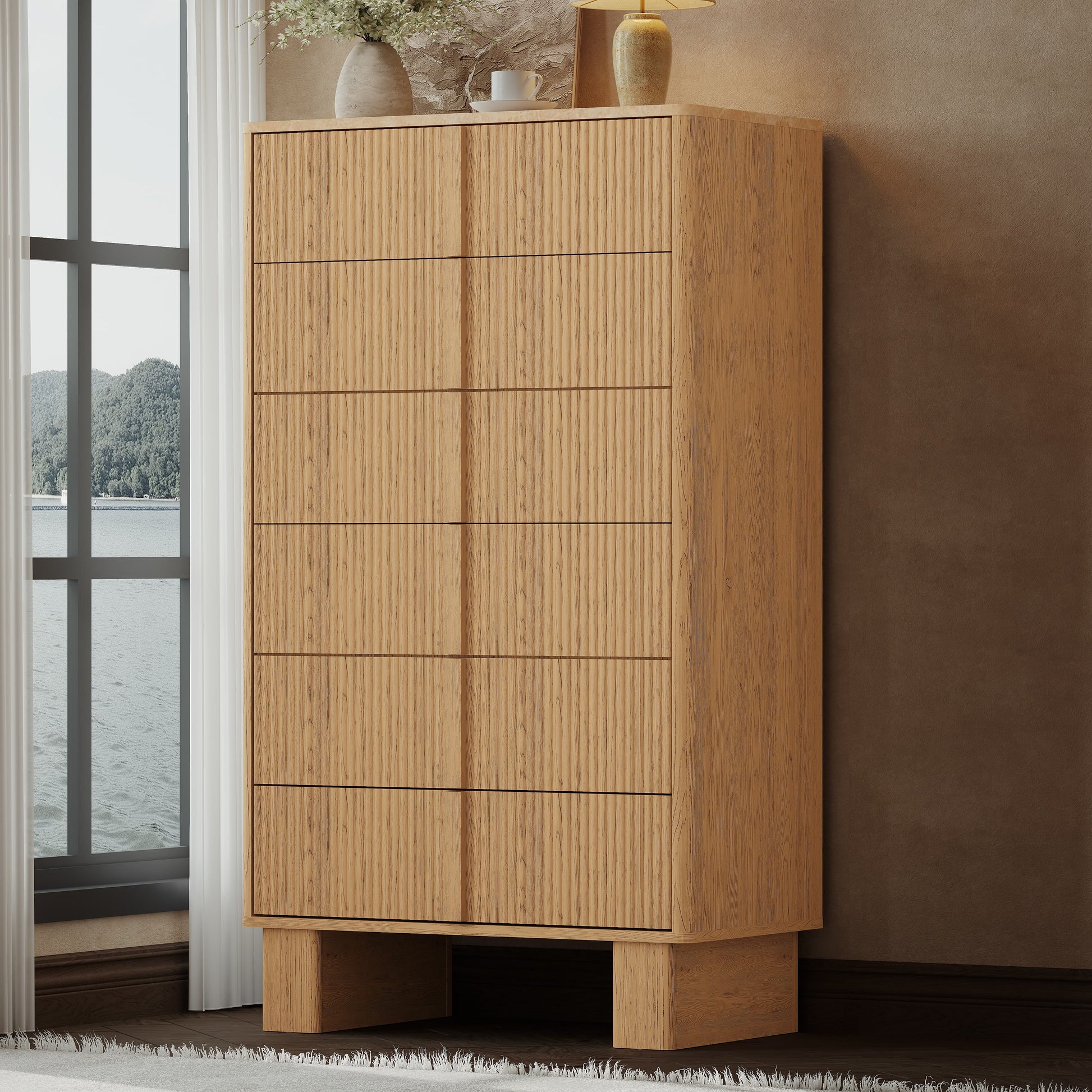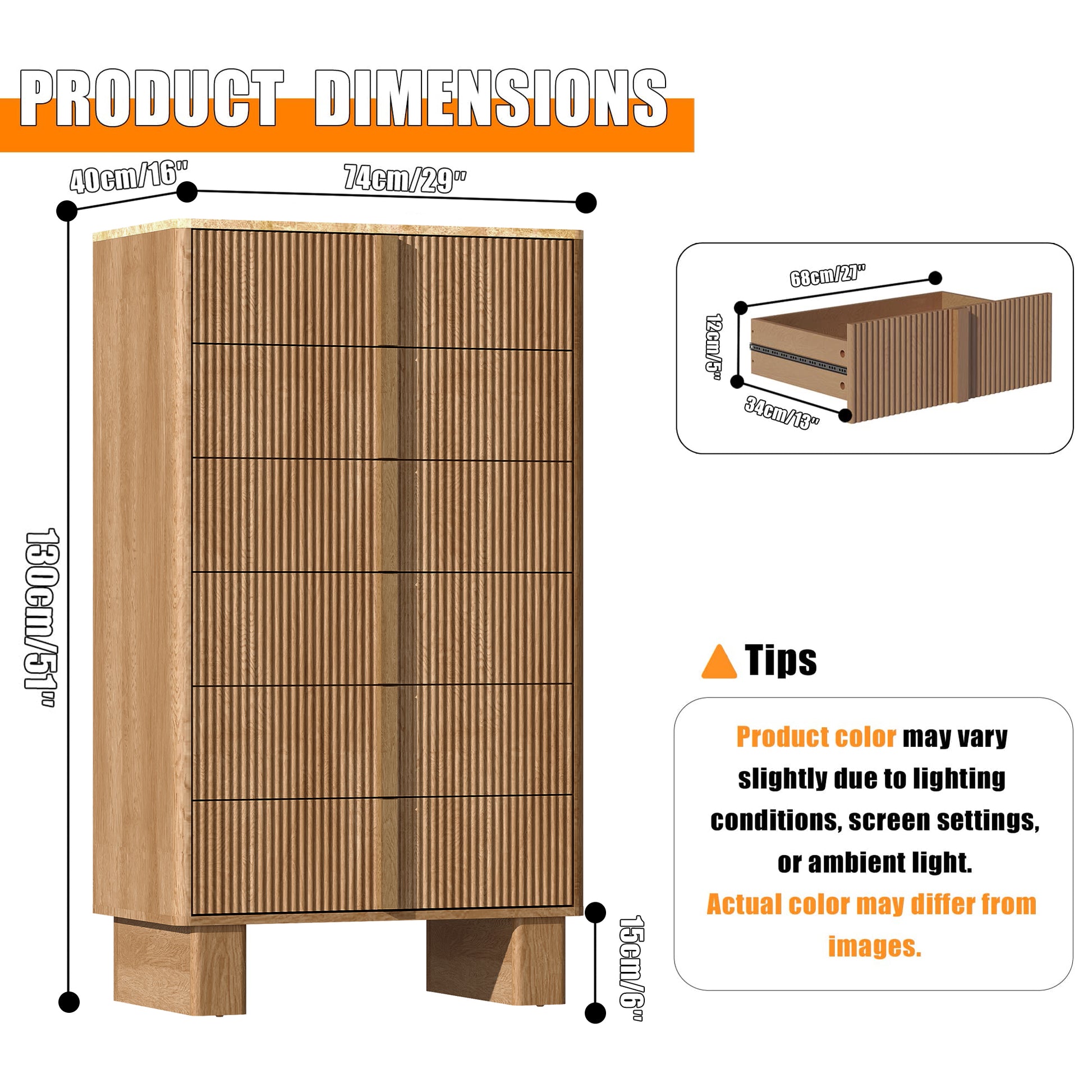 Fluted 6 Drawer Dressers for Bedroom, 51" Tall Modern Chests of Drawers with Wooden Handle